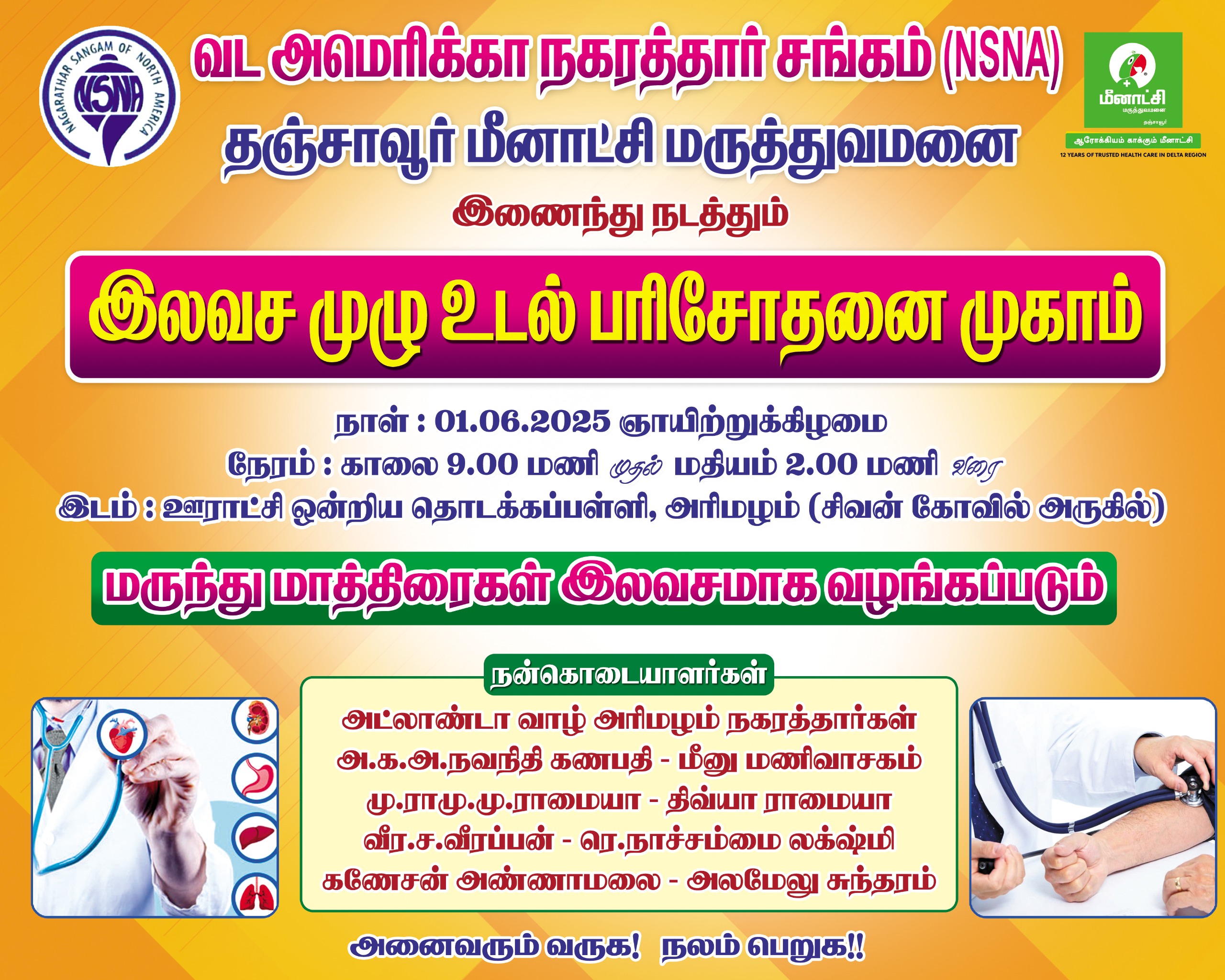 Health Camp Sponsored by Arimalam Nagarathars in Atlanta.